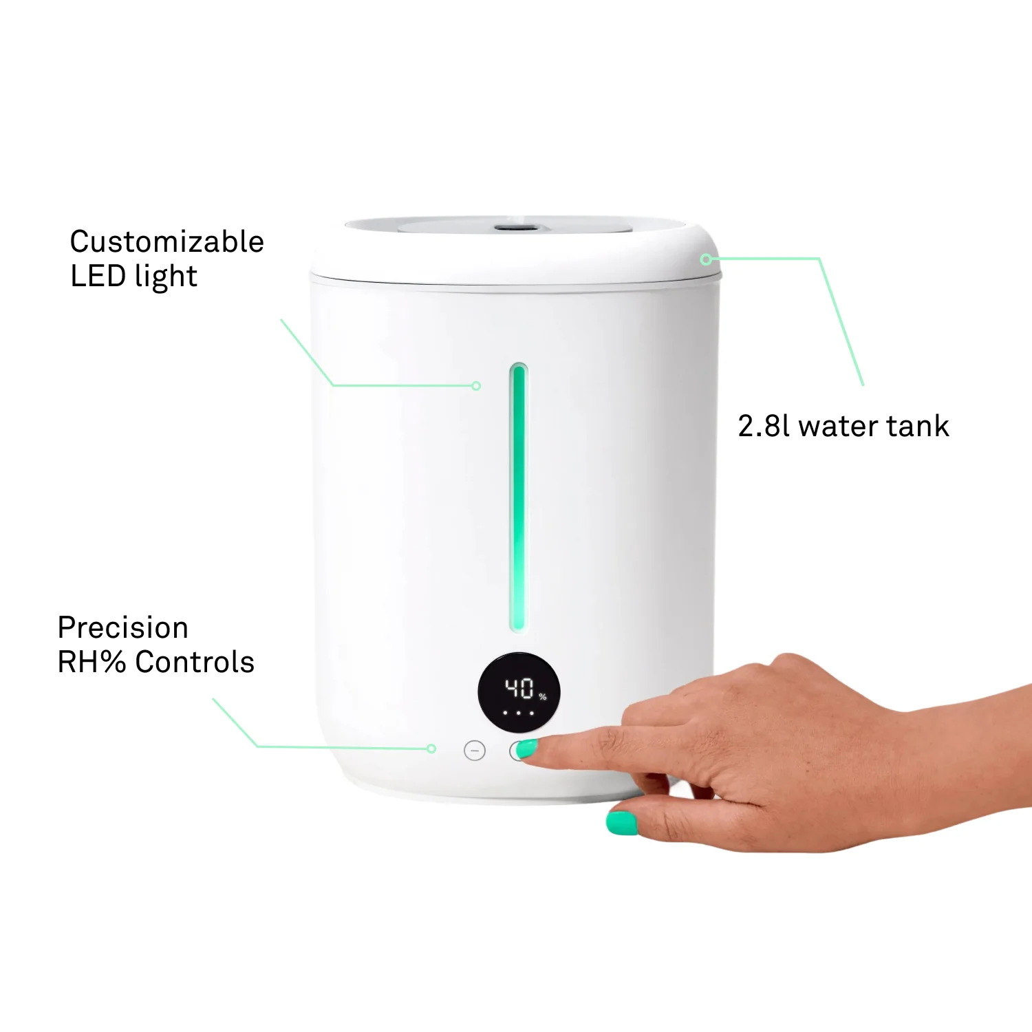 - Easy‑clean reservoir and replaceable filter